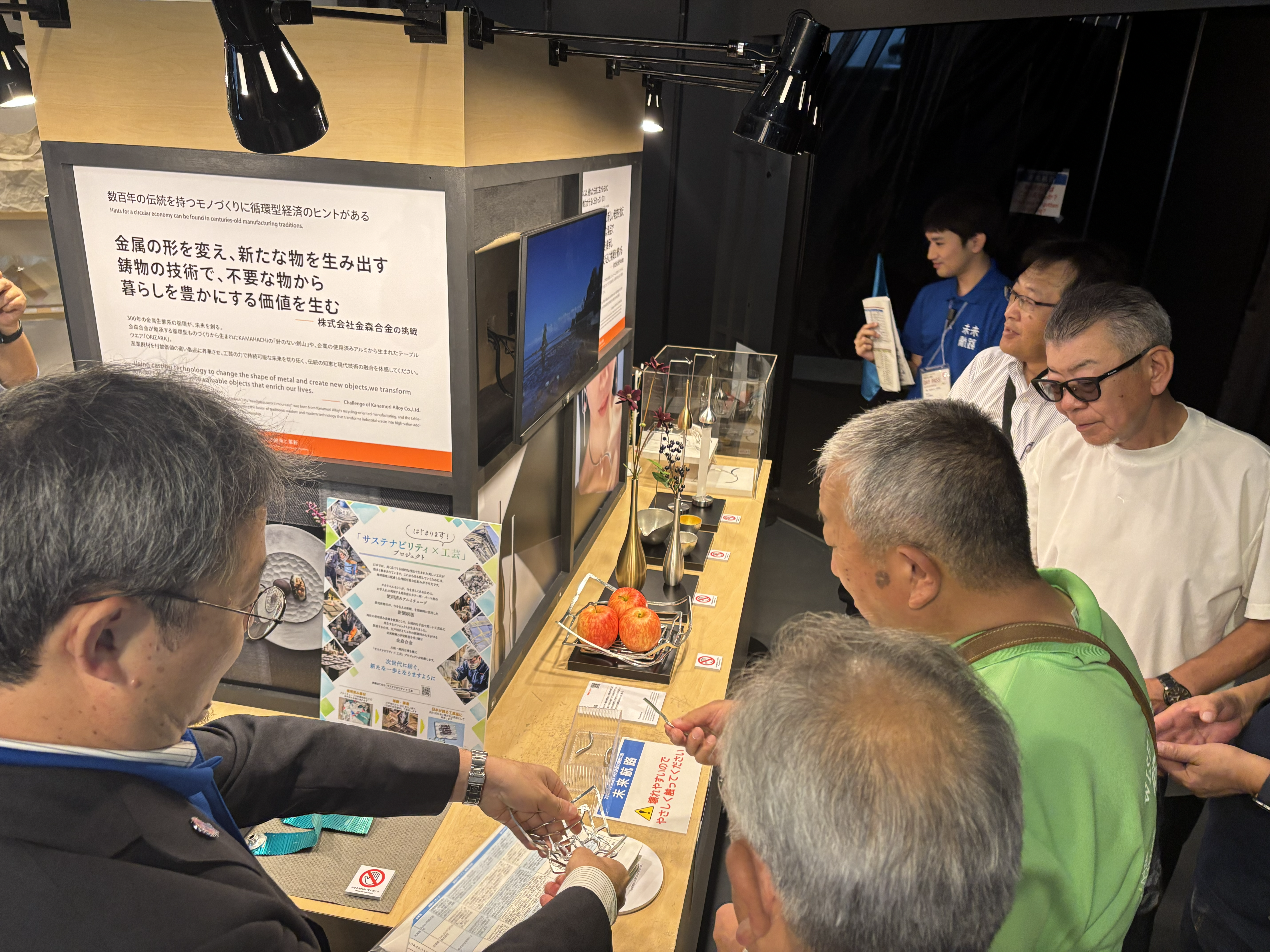 研修会当日は、独立行政法人中小企業基盤整備機構が10月3日から7日の5日間の間、万博内に出展したブース「未来航路」を見学し、未来思考の製品やサービスなど様々な技術やアイデアに触れることができました。